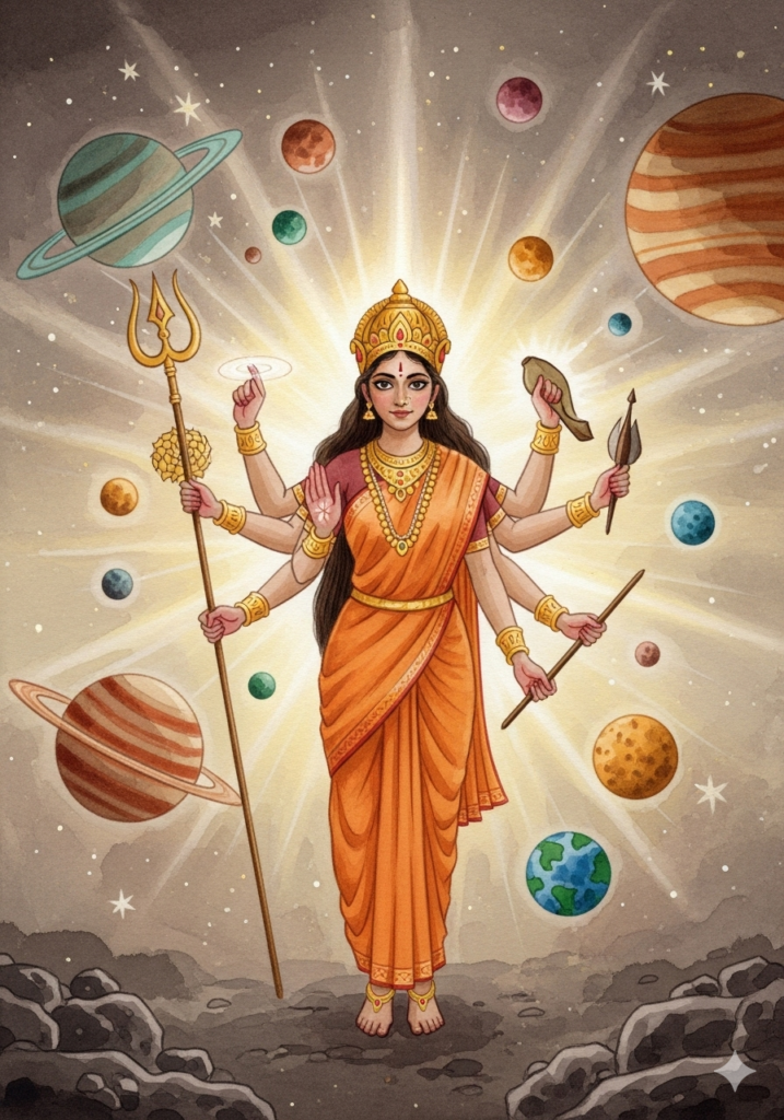 कुष्मांडा माता ने ब्रह्मांड की सृष्टि की। उनका तेज हमें सकारात्मकता और रचनात्मक ऊर्जा प्रदान करता है।